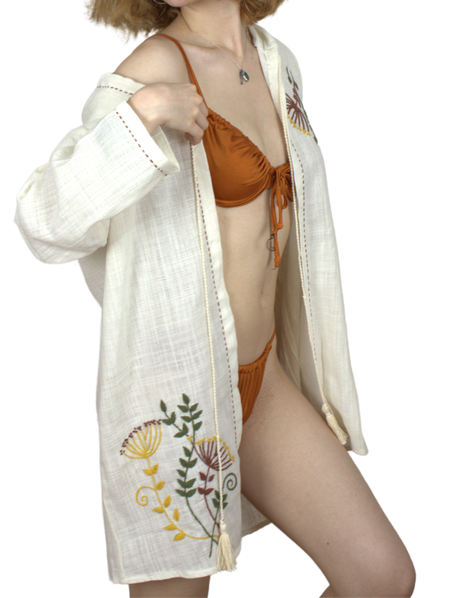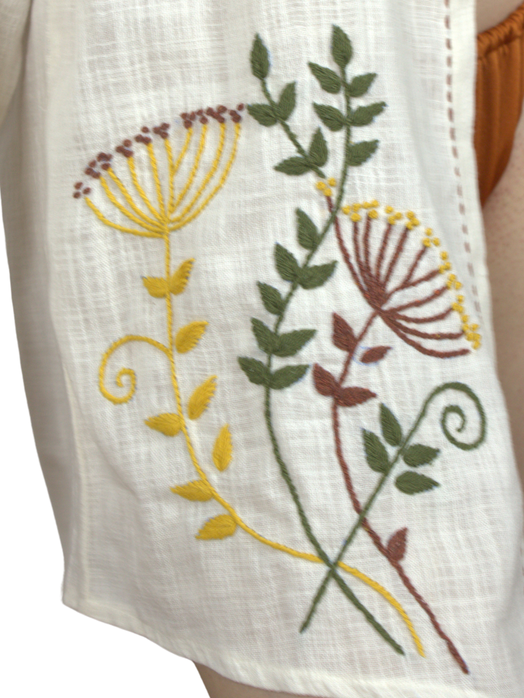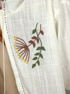Ön göğüs ve etek kısmında yer alan el işi hindibağ çiçeği nakışları, ürüne yalnızca estetik değil; anlam da katar. Hindibağ, doğada güçlü kökleriyle bilinir. İşte bu gömlek de, stilini doğanın gücüyle köklendirmek isteyenler için tasarlandı.
